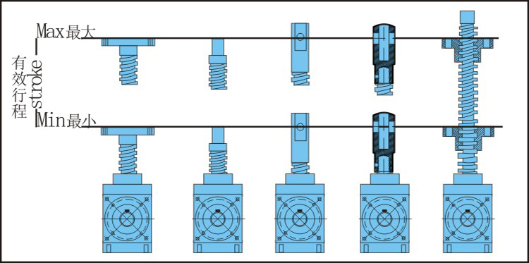蝸輪絲桿升降機(jī)行程、總長(zhǎng)關(guān)系