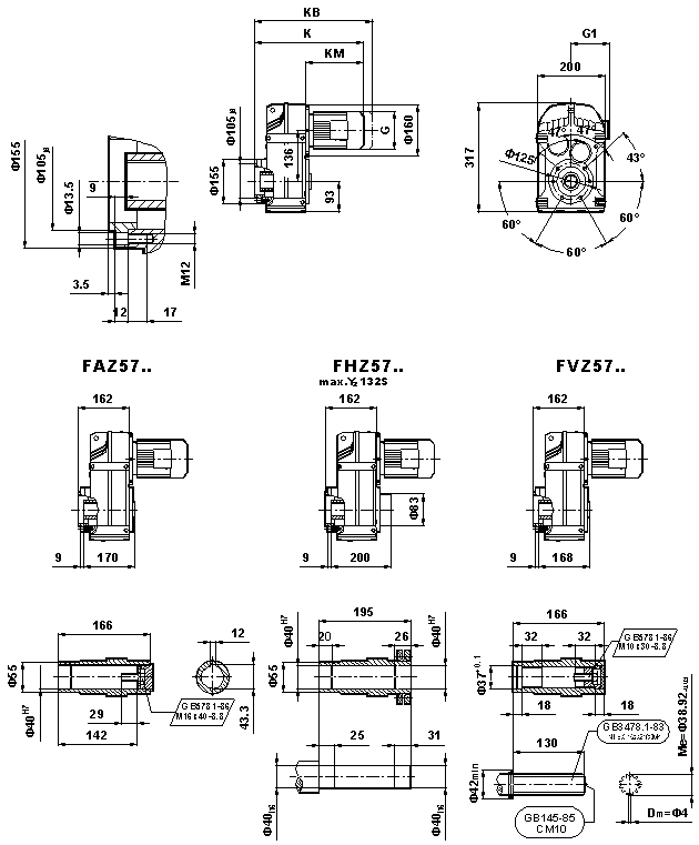 注:KB為帶制動(dòng)器的長(zhǎng)度