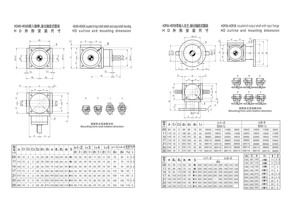 4、HD效率換向器共有七種規(guī)格,選型范圍大,輸出軸形式多樣,可滿(mǎn)足多種場(chǎng)合的需要。
