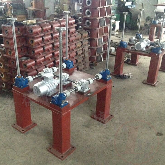 絲桿升降機(jī)可以單臺頂升或下壓使用也可與轉(zhuǎn)向箱或減速機(jī)組合使用。如:兩臺組合直線型運(yùn)動或與轉(zhuǎn)向箱組合成T型運(yùn)動。也可以四臺或八臺聯(lián)動使用,組合成能同時升降、同一方向旋轉(zhuǎn)的工作平臺,且有多做組合型式可以選,方便實(shí)用。