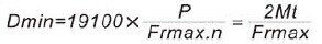 式中:Dmin——齒輪或帶輪的_小直徑,m;