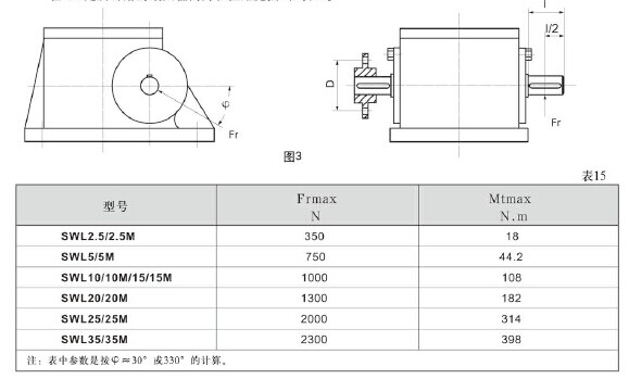 絲桿升降機(jī)蝸桿軸伸的許用徑向力