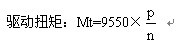 式中:Mt為驅(qū)動(dòng)扭矩,P為驅(qū)動(dòng)功率,n為轉(zhuǎn)速。