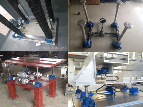 螺旋蝸輪絲桿升降機平臺可以多種組合使用,常見兩臺、四臺、八臺組合等。根據使用工況不同,絲桿升降機平臺的組合型式可選擇一字型、T型、U型、H型等。蝸輪絲桿升降機平臺將電機、減速機、轉向器、蝸輪蝸桿升降機通過聯軸器、連桿等巧妙地組合在一起,能夠達到多臺穩定、同步、往復升降的要求,也可實現翻轉運動。