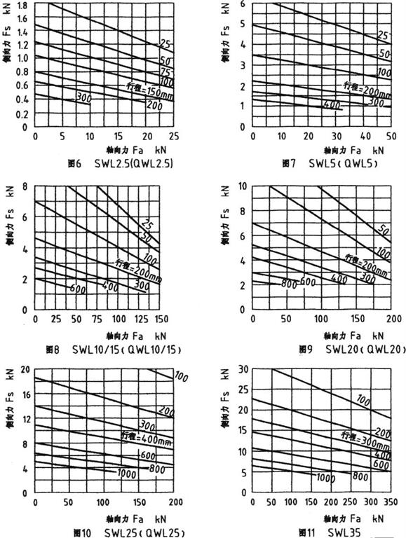 SWL升降機螺桿許用側向力Fs 和軸向力Fa與行程的關系