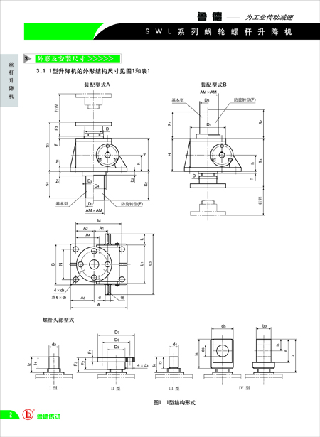 絲桿升降機-SWL蝸輪絲桿升降機外形結構尺寸圖-魯德傳動