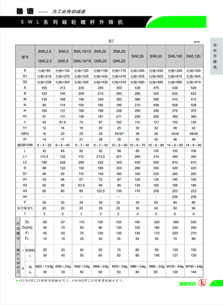 SWL系列蝸輪螺桿升降機有不同的結構型式和裝配方式,提升高度可按要求加工制造。請根據實際使用負荷、螺桿行程和起升速度選擇合適的