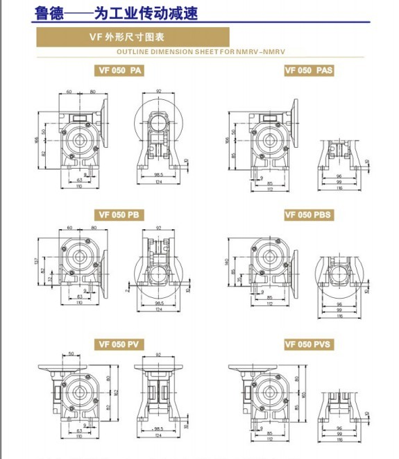 雙級型號VF030/040、VF030/050、VF030/063、VF040/075、VF040/090、VF050/105、VF050/110、VF063/130、VF063/150。