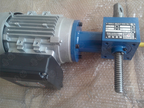 我們知道蝸輪絲桿升降機是由蝸輪減速機和升降絲桿組成,其減速部件是蝸桿傳動,利用蝸桿帶動蝸輪實現減速。蝸輪中心是內螺紋結構,相當于升降絲桿的螺母,和升降絲桿相匹配,電機帶動蝸桿轉動,蝸輪旋轉帶動絲桿做軸向運動。蝸輪蝸桿結構的設計特點_是自鎖功能,這是其他_一種傳動型式都無法實現的,當蝸桿的導程角小于嚙合輪齒間的當量摩擦角時,機構具有自鎖性,可實現反向自鎖,即只能由蝸桿帶動蝸輪,而不能由蝸輪帶動蝸桿,從而防止升降過程中物體下墜。需要注意的是在一些沖擊震動力較大的場合自鎖功能可能會失效,此時需要另外加裝制動裝置。