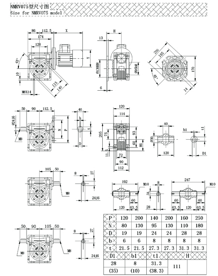 NMRV075蝸輪減速機外型尺寸-魯德傳動