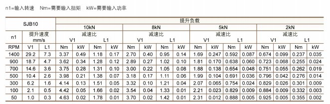 的提升能力為2KN~10KN,額定動載11KN,絲桿直徑20,蝸輪蝸桿減速比V1=1:4、L1=1:16,蝸桿輸入1轉絲桿行程為V1=1.25mm、L1=0.31mm,_輸入功率為V1=0.57KW、L1=0.27KW,滿載啟動扭矩V1=4.8Nm、L1=1.8Nm,啟動效率V1=41、L1=1.8,1500rpm時的運轉效率V1=59、L1=42,箱體重量為6kg。
