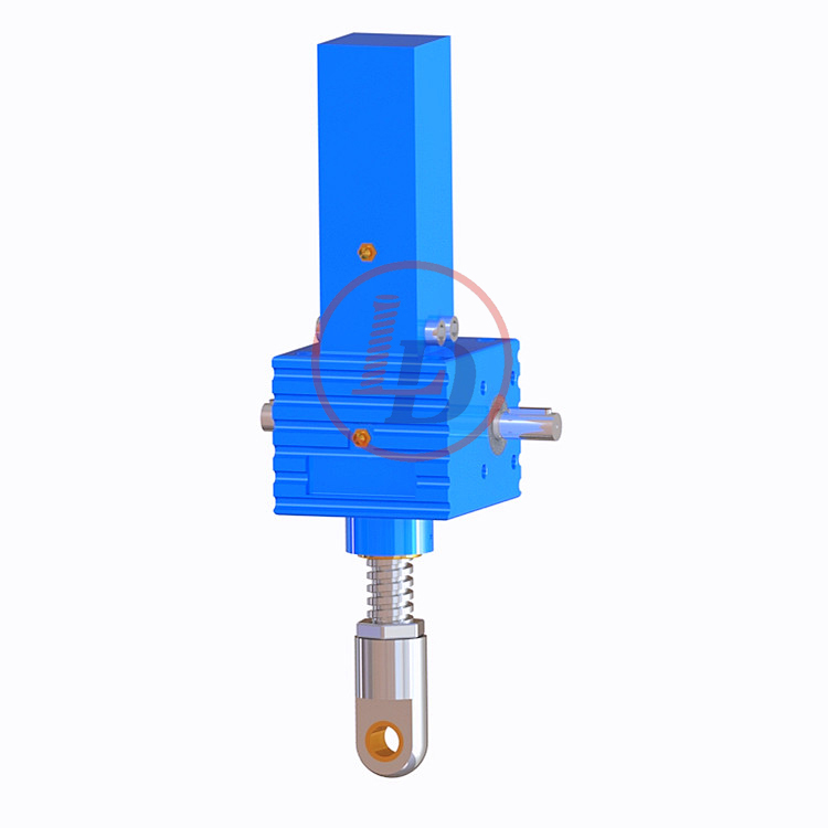 的原理為蝸桿驅動蝸輪旋轉,蝸輪中間為內螺紋孔機構(與絲杠相嚙合),再將旋轉運動傳遞至絲杠上下直線運動。