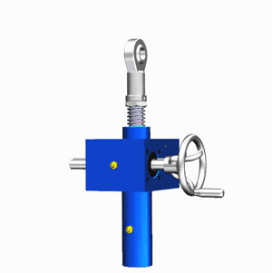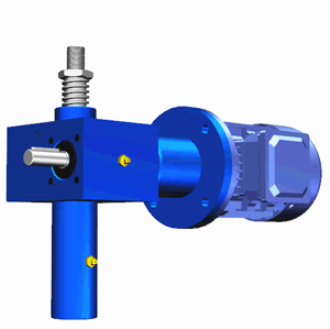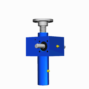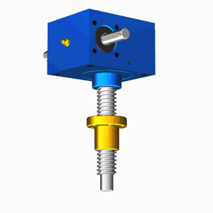 SJA梯形絲桿升降機(jī)的原理為蝸桿驅(qū)動(dòng)蝸輪旋轉(zhuǎn),蝸輪中間為內(nèi)螺紋孔機(jī)構(gòu)(與絲杠相嚙合),再將旋轉(zhuǎn)運(yùn)動(dòng)傳遞至絲杠上下直線運(yùn)動(dòng)。